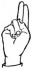 На ћирилици написано НИНА ДАНГУБИЋ састоји се из 12 слова [?]. Исписано ћириличном једноручном азбуком за глувонеме: